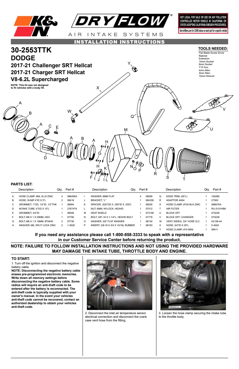 - Replaces entire factory air intake system